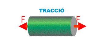 - Tracció: La tracció, en els camps del càlcul d'estructures i enginyeria, és l'esforç a què està sotmès un cos per l'aplicació de dues forces que actuen en sentit oposat, i tendeixen a estirar.